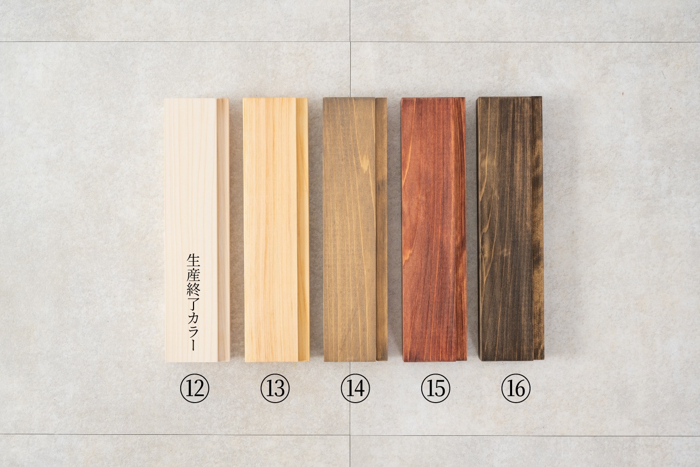 天然木の風合いを活かしつつ、選べる15色(一部廃盤)のカラーバリエーションをご用意しました。
